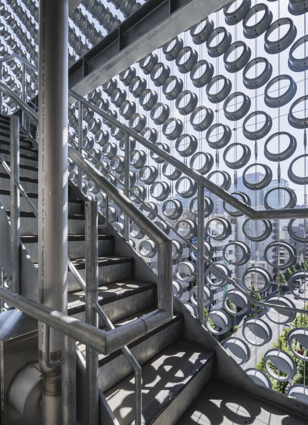 非常階段まわりでは下からの視線を遮るように、また、日射遮蔽が必要な開口部付近では影が多く落ちるような形状を採用するなど、機能性と環境性能を考慮した設計がなされています。